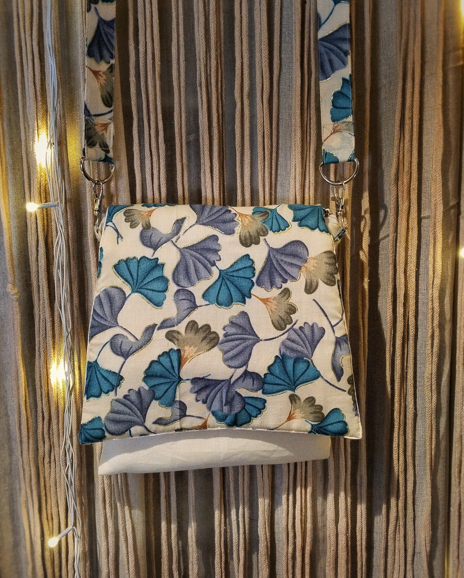 Bring the calming touch of nature to your daily style with our Botanic Breeze Cotton Sling Bag. Crafted from soft cotton fabric, this sling bag features a serene botanical print in cool shades of blue, teal, and earthy tones, set against a soothing beige backdrop.